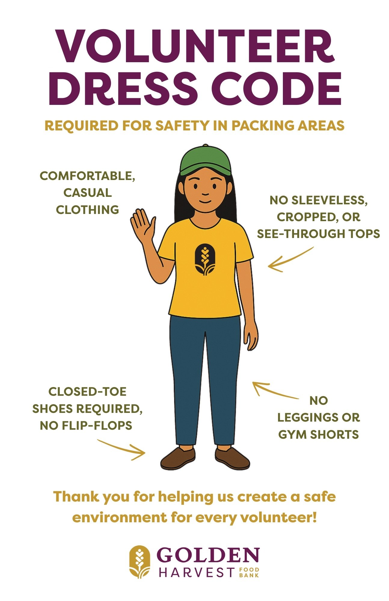 Golden Harvest requires Volunteers to adhere to the following dress code:
